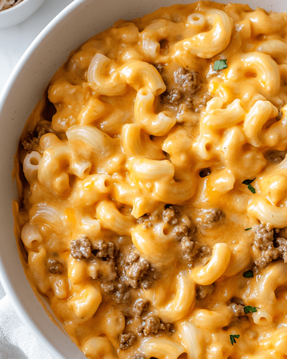 This one-pot pasta bake has all the flavors of a classic cheeseburger—savory ground beef, melty cheese, and just the right amount of seasoning—mixed into a creamy, hearty pasta dish. It’s cozy, kid-friendly, and comes together with zero need to pre-boil the noodles.